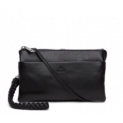 Nellie combi clutch fra ADAX er en elegant og alsidig taske, der er perfekt til både hverdag og fest. Fremstillet i lækkert sort kalveskind og udsmykket med elegante sølvfarvede detaljer, udstråler Nellie både stil og kvalitet. Den s
