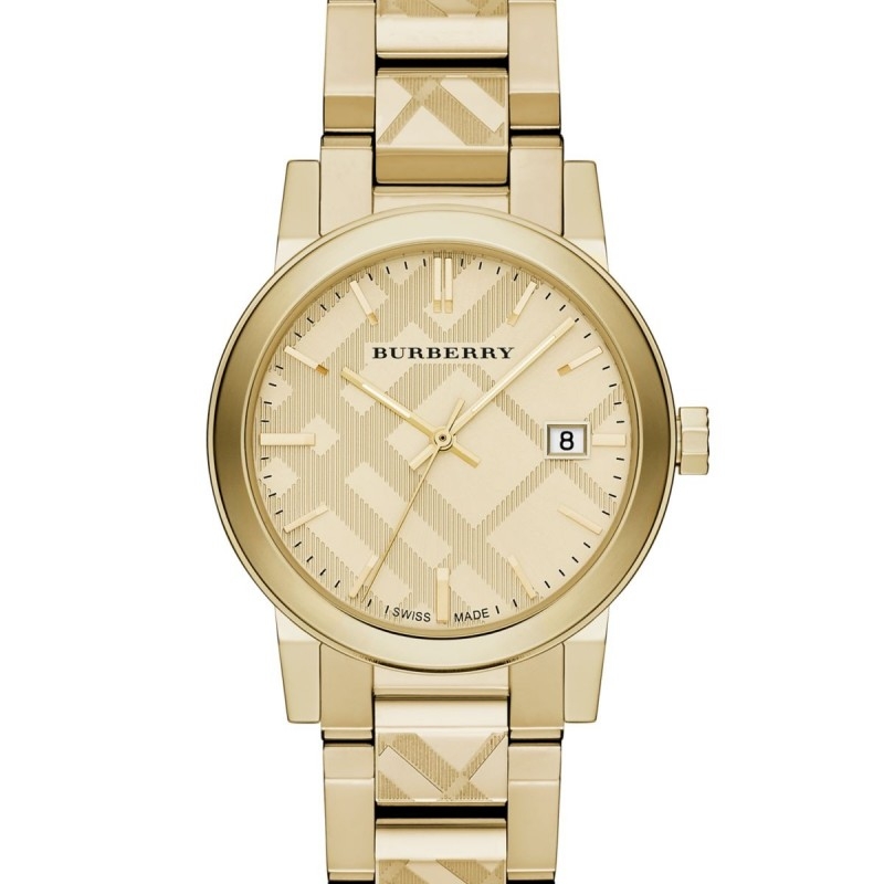 Køb Burberry “The City” Lady Gold ur til damer med gratis fragt.BURBERRY “The City” Lady Gold BU91145 er et rigtigt luksus designerur med smuk designet urkasse på 35mm og 8mm tykkelse. Urkasse, urkrans og krone er alle guldfarvet med
