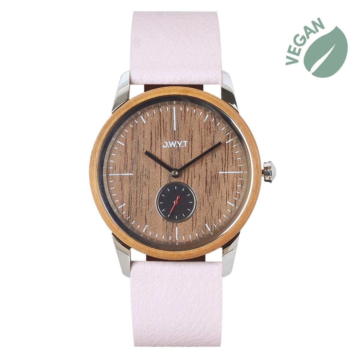 Køb DWYT Etna Vegan Nude ur til damer med gratis fragt.DWYT ETNA Vegan Nude er et efter franske forhold et klassik dameur fra den franske designvirksomhed DWYT i Lyon. DWYT ETNA Vegan Nude er skabt i naturlige materialer – oliventræ urkasse, valnød urskiv