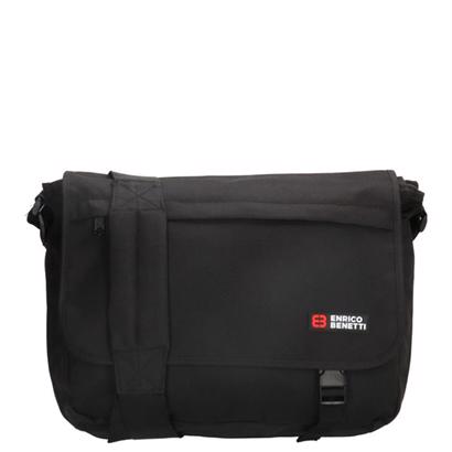 Super flot unisex messenger skuldertaske i sort, med klap henover åbningen, som fastsættes med spænde. Når klappen løftes er der adgang til en for- netlomme med lynlåsluk, samt hovedrummet der ligeledes lukkes med l