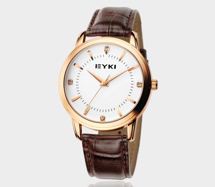 Et elegant ur til mænd fra EYKI. Uret er produceret af det anerkendte brand EYKI. Uret har en brun kunstlæderrem, som har et rustikt look. Remmen kan indstilles i 8 forskellige størrelser, så den kan tilpasse som den skal. De rosegold farvede detaljer på