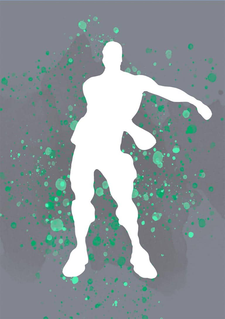 Sæt kulør på væggene med vores Fortnite Dance No 02 Gamer Plakat. Denne moderne plakat fanger essensen af en populær Fortnite dans i en dynamisk, stilren silhuet. Med grønne stænk på en grå baggrund er denne plakat et must-have for enhver gaming-entusiast