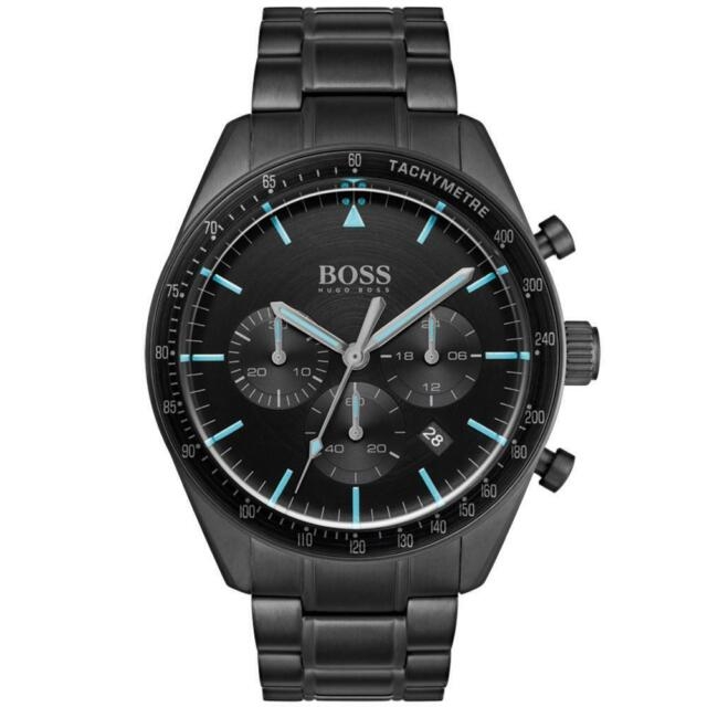 Køb Hugo Boss Black Trophy ur til mænd med gratis fragt.HUGO BOSS Black Trophy HB1513675 er moderne herreur holdt i carbonsort med detaljer af blåt. Hugo Boss Black Trophy har en sort urkasse på 44mm og en sort tachymeter urkrans. Uret har smart sort urlæ