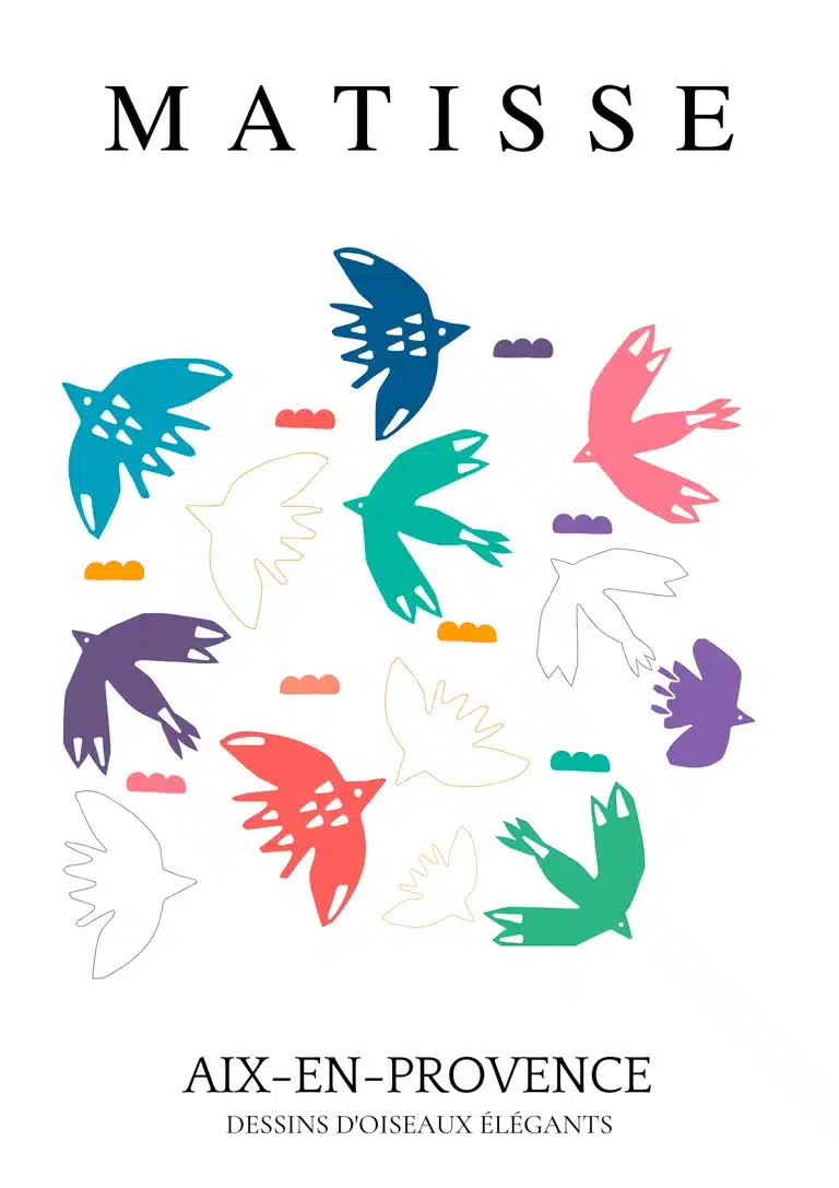 Leder du efter en unik plakat til dit hjem eller kontor? Matisse Inspired Birds Decoupe Plakat bringer kunst og elegance sammen på den smukkeste måde. Med levende farver og elegante fuglemotiver, er denne plakat et sandt blikfang. Den passer perfekt i mod