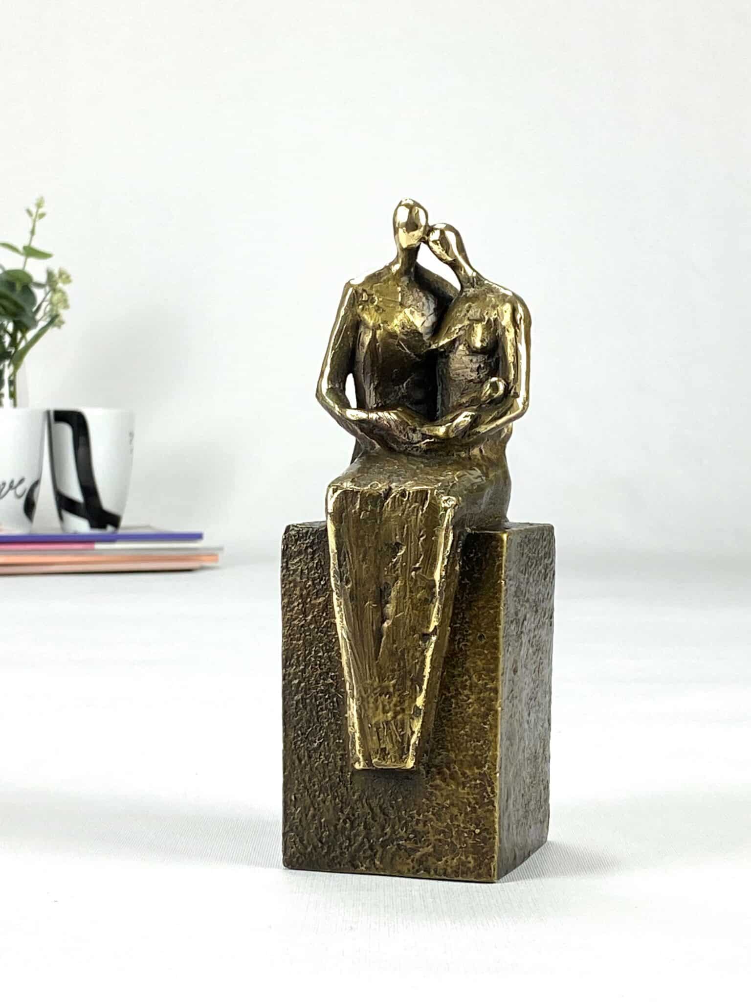 Min familie med 1 barn – bronzeskulptur som på smukkeste vis har familien i fokus