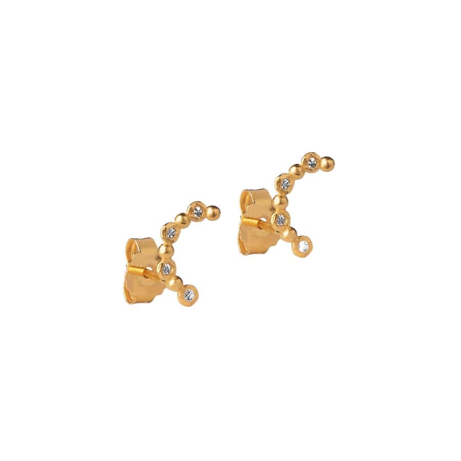 ENAMEL Copenhagen laver deres smykker i 18 karat forgyldt sterlingsølv og bliver produceret i Thailand – med nøje udvalgte værksteder. Stud Vilma er en lille ørering, som med sine fire glitrende zirkoner giver en fin detalje.