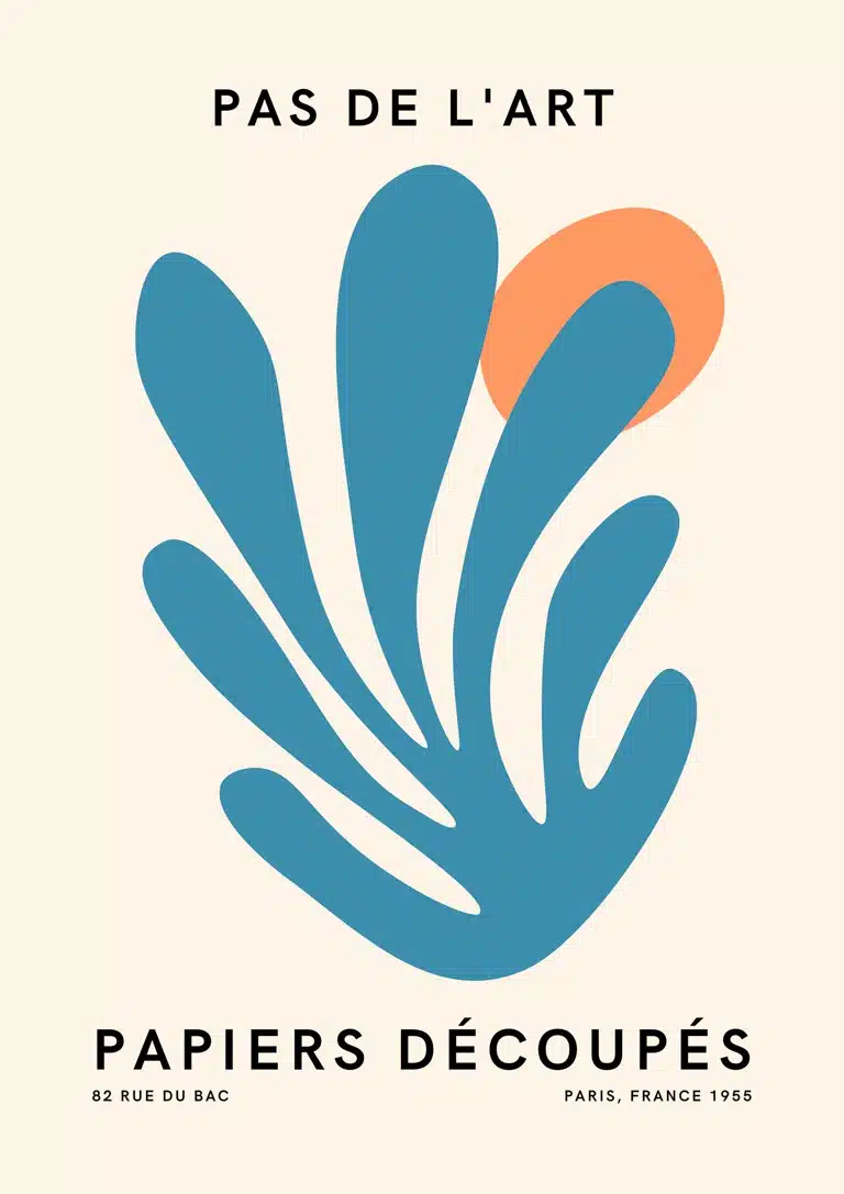 Giv dit hjem et kunstnerisk løft med Pas De L’art Blå og Orange Plakat. Denne unikke plakat kombinerer modernitet med nostalgiske toner, inspireret af klassisk fransk papirklipkunst. Perfekt til stuen eller kontoret, bringer plakaten en frisk farvep