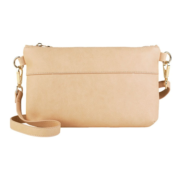 Denne store elegante combi- clutch er både praktisk og stilfuld. Med dens smukke lyse beige sand farve og guld detaljer er den et virkeligt blikfang. Tasken er foret med den stilfulde rosa Rosemunde logo lining. Når du åbner lynlås