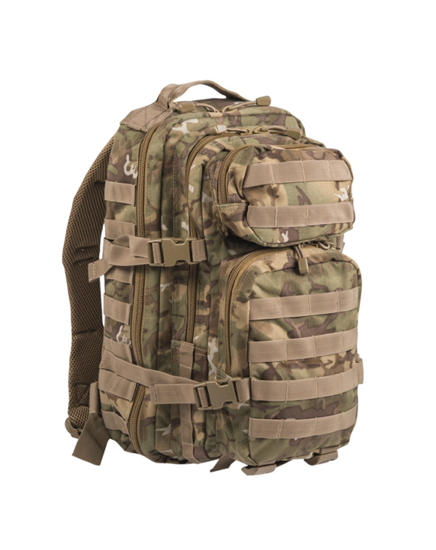 Rygsæk US ASSAULT – Multicam – Small – 20 liter – Molle system US assault rygsæk med fede features! US assault rygsæk med mollesystem åbner op for uendelige tilpasnings og udstyrs muligheder. Molle systemet kan som altid klare at få tilført lommer og grej