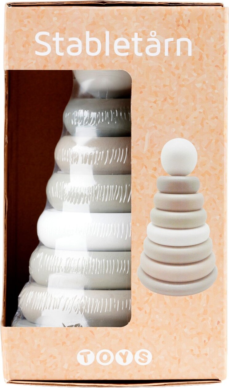 Rigtig fint stabeltårn fremstillet i træ, og designet med fine, sarte farver Stabeltårnet er…
