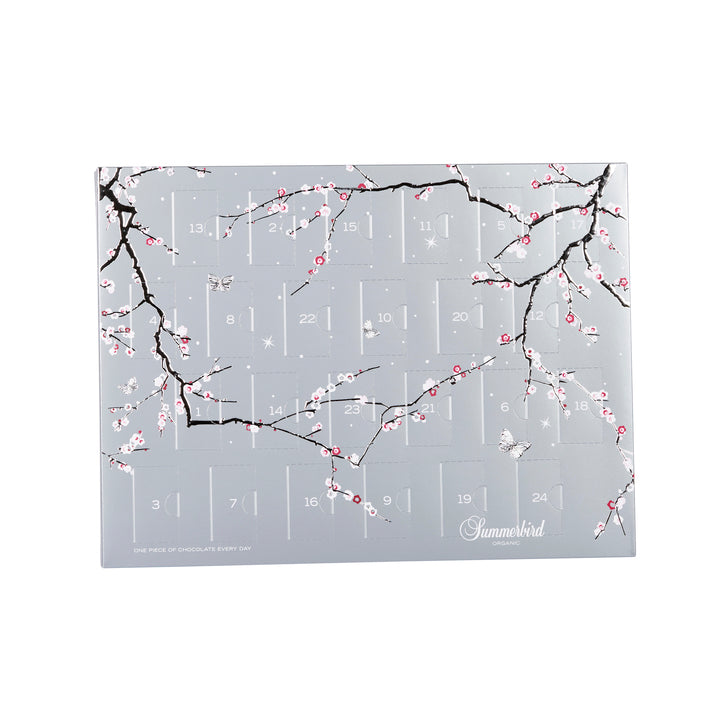 Den populære julekalender fra Summerbird- med dansk økologisk luksuschokolade af allerhøjeste kvalitet. Sølvfarvet og stilren – den passer perfekt ind i alle hjem. Bag hver låge gemmer sig 2 stykker chokolade, så kalenderen kan med fordel deles med én, du