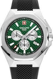 Swiss Alpine Military Typhoon Chronograph Green er et moderne Chronograph herreur fra det schweiziske urfirma, og er indbegrebet af sporty elegance. Robust og vandtæt op til 10 ATM, ideelt til eventyr. Dette herreur fra Swiss Alpine Military by Grovana ko