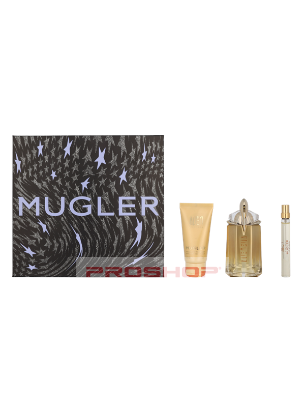 Thierry Mugler Alien Goddess Gaveæske indeholder Eau de Parfum Spray (60 ml), Rejsespray (10 ml) og Body Lotion (50 ml). Dette sæt giver en betagende og luksuriøs duftoplevelse for kvinder.