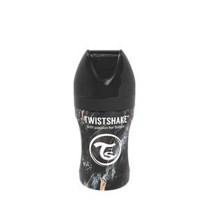 Sutteflaske fra Twistshake i rustfrit stål med trendy sort marmorprint – stilet og gribevenligt design Twistshake-sutteflasken i rustfrit stål er inspireret af de seneste modetendenser. Højkvalitetsstålet er et bæredygtigt alternativ, som er holdbart og s